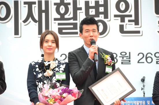 이날 푸르메재단 홍보대사이기도 한 션과 정혜영 부부는 김성수 푸르메재단 이사장으로부터 감사패를 받았다.