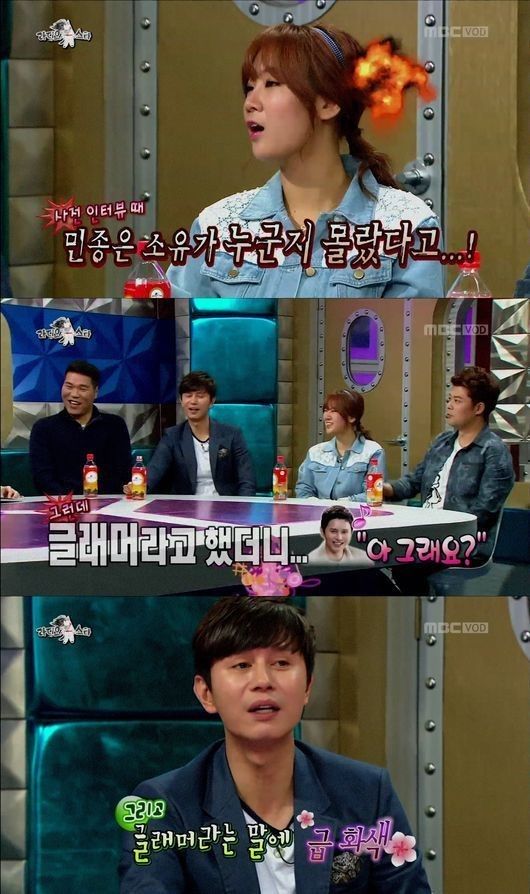 이에 윤종신은 "김민종 매니저가 하는 말이, 민종이 형은 섭외할 때 예쁜 여자 한 분망 있으면 열심히 한다더라"고 말했고 "오늘 어떠냐?" 묻자 김민종은 "좋습니다"라며 소유를 의식한 듯 말해 눈길을 끌었다.