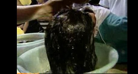 창포물 머리 감기
