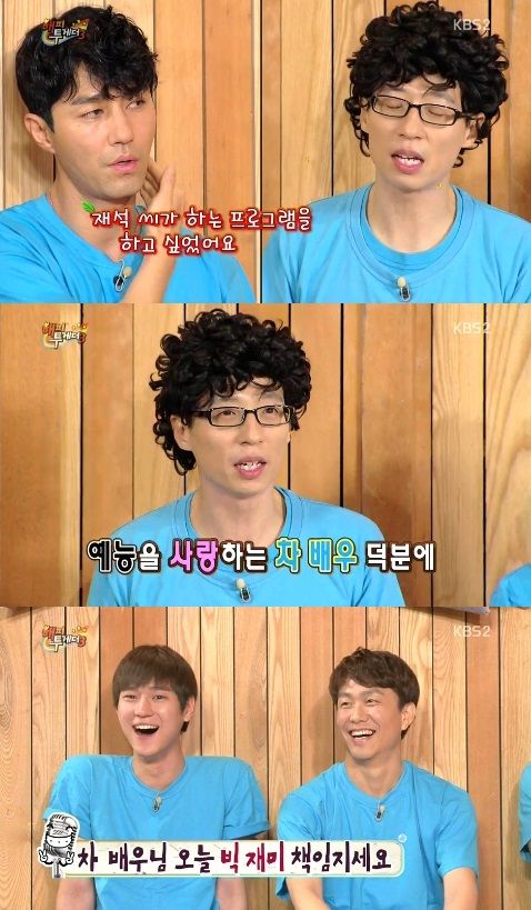 이에 유재석은 "갑자기 얘기가 나온 김에 이야기 하자면, 차승원 씨는 제가 어려울 때마다 도움을 준다. 연탄도 날라줬다"며 "차승원 씨가 예능을 사랑하는 사람이다. 오늘 '해피투게더' 휴일 아침 녹화지만 기쁜 마음으로 하겠다"고 말해 출연진들을 폭소케 했다.