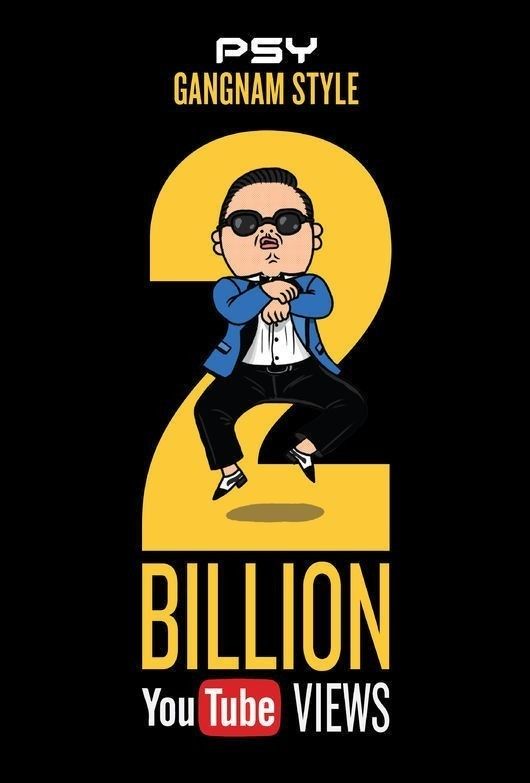 싸이 캐릭터가 '2' 숫자 앞에서 말춤을 추는 모습 아래 'Billion'이라는 글자와 'You Tube VIEWS'라는 문구가 적힌 이미지로 스눕독은 싸이 20억 뷰를 축하했다.