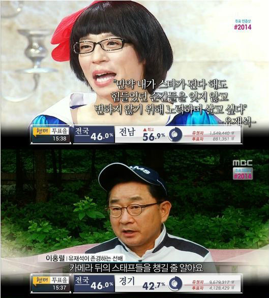 유재석 다큐 '유재석 용비어천가'는 유재석이 '차세대 리더 당선자'가 되면서, 그에 대해 동료 선후배들이 평가한 장면이 담겨있어 훈훈함을 자아내고 있다. 또한 그가 방송에 입문한 후 지금의 인기를 얻기까지의 과정이 담겨있어 시청자들의 관심을 모았다.