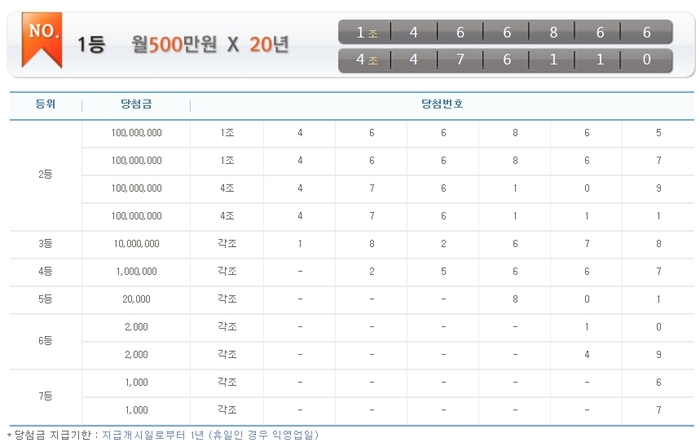 [SBS연예뉴스 연예뉴스팀] 연금복권153회 당첨번호, '1조466866번-4조476110번' 2등은?