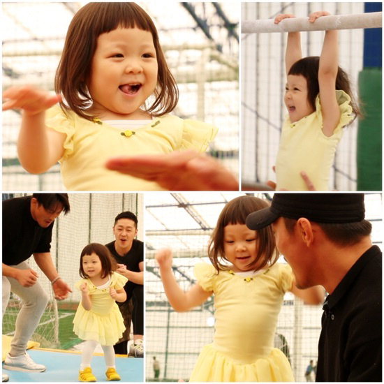 이어 추사랑은 낮은 철봉에 거뜬히 매달리더니 "좀 더. 높은 거"라고 말하며 탁월한 운동 신경과 승부욕을 유감없이 발휘했다.