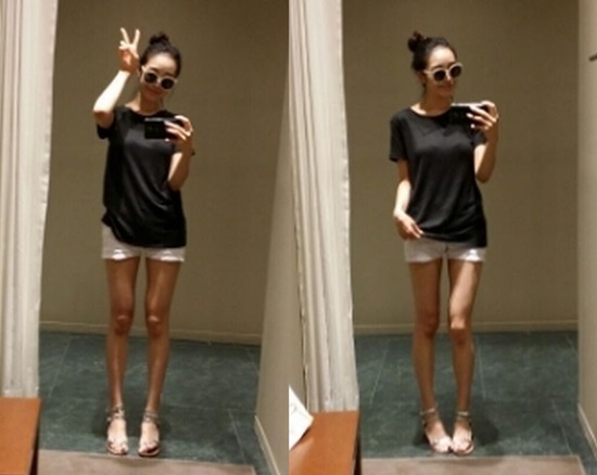 블로그에 공개된 사진 속 박샤론은 핫팬츠를 입고 늘씬한 몸매를 과시하고 있어 눈길을 끌고 있다.