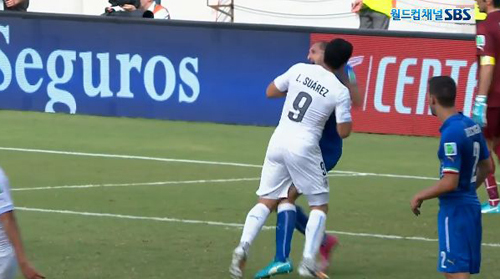 수아레스는 16강 진출이 걸린 이탈리아와의 조별리그 마지막 경기에서 후반 35분 이탈리아 수비수 조르조 키엘리니의 왼쪽 어깨를 깨물었다.