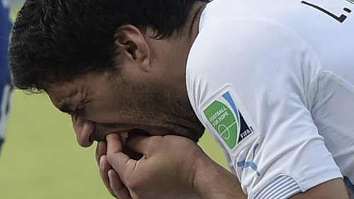 수아레스는 16강 진출이 걸린 이탈리아와의 조별리그 마지막 경기에서 후반 35분 이탈리아 수비수 조르조 키엘리니의 왼쪽 어깨를 깨물었다.