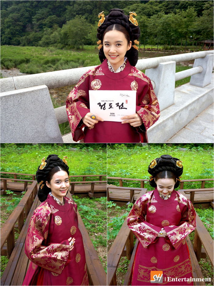 공개된 사진 속 고나은은 기품 넘치는 왕후로 변신한 채 '정도전' 마지막회 대본을 들고 단아하게 미소 짓고 있다. 또 다른 사진에서 양손을 가지런히 모은 고나은은 지금까지 '정도전'을 사랑해준 시청자들에게 감사의 마음을 전하는 듯 배꼽인사를 하고 있어 눈길을 끈다.