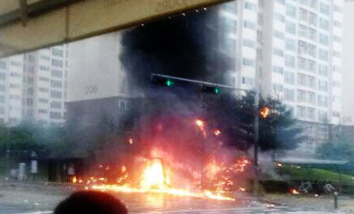 목격자들은 헬기가 조종기능을 상실하고 회전하며 추락했다고 당시 상황을 전했고, '쾅'하는 굉음과 함께 4차로 도로 옆 인도로 추락하면서 불길에 휩싸인것으로 보인다.