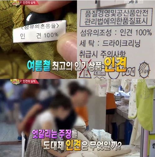 이에 전문가는 "인견은 나무 펄프를 가지고 가공해서 만든 실을 의미하며 비스코스 레이온이라고 한다. 따라서 인견은 레이온에 해당한다. 결국 인견제품은 천연섬유가 아닌 재생섬유라고 보는 것이 맞다"고 밝혀 보는 이들로 하여금 놀라움을 자아냈다.