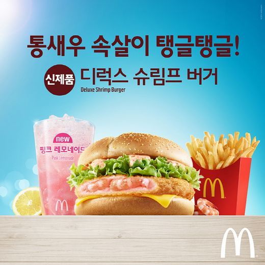 맥도날드는 탱글탱글한 통새우가 들어간 새우 패티가 들어있는 신제품 '디럭스 슈림프 버거'와 선명한 분홍빛의 과일 에이드 음료 '핑크 레모네이드'를 출시했다.