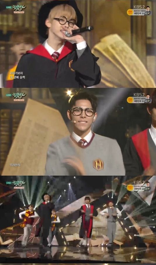헤일로는 22일 KBS2 음악 프로그램 '뮤직뱅크' 820회에서 영화 '해리포터' 시리즈를 연상 시키는 마법 소년으로 변신, 시선을 독차지했다.