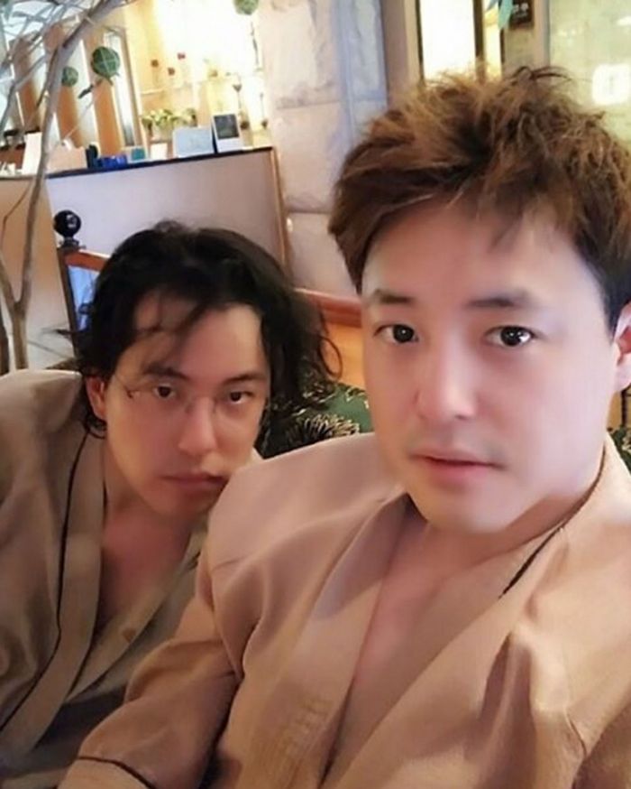 공개된 사진 속 두 사람은 찜찔방으로 보이는 곳에서 찜찔복을 입고 머리를 잔뜩 흩뜰어트린 채 카메라를 응시하고 있다.
