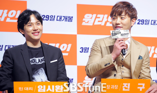 [SBSfunE 김현철기자]배우 진구가 27일 오전 서울 압구정 CGV에서 열린 영화 '원라인' 제작보고회에서 질문에 답하고 있다.
