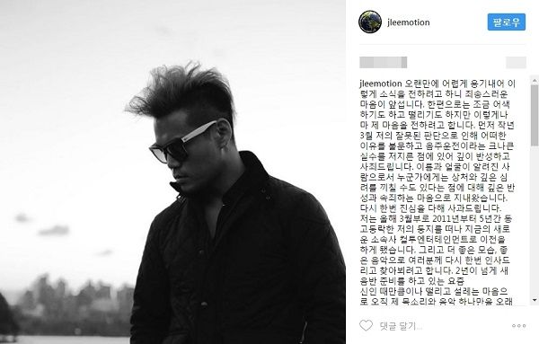 [SBS연예뉴스 |이정아 기자]가수 이정이 음주운전을 한 것에 대해 직접 사과하고 새 앨범 소식을 전했다.