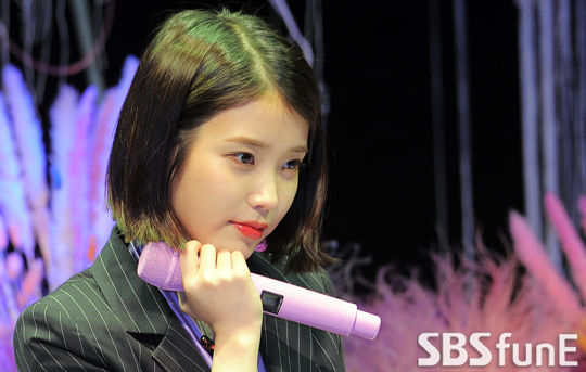 [SBSfunE 김현철기자]가수 아이유가 21일 오후 서울 마포구 서교동 신한카드 판스퀘어 라이브홀에서 진행된 아이유 정규 4집 '팔레트' 발매 기념 음악감상회에 참석해 노래를 듣고 있다.