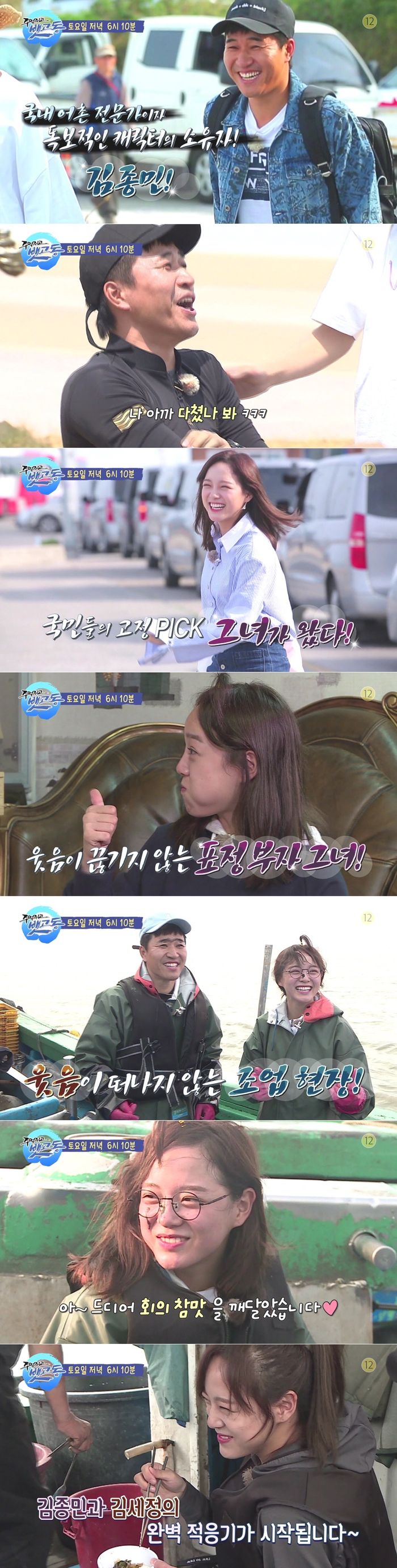 걸그룹 구구단의 멤버 김세정은 특유의 발랄함과 털털한 성격으로 '표정 부자'에 등극했다. 공개된 영상에서 김세정은 갯벌에서나 배 위에서나 연신 얼굴에 미소를 띠고 폭풍 리액션을 선보인다. 김세정은 민낯에 사과 머리, 동그란 안경까지 무대와는 다른 모습으로 거침없이 바다와 갯벌을 휘저었고 “아~ 드디어 회의 참맛을 깨달았습니다”, “어머 너무 재밌다~”라고 말하며 함박웃음을 지어 눈길을 사로잡는다.