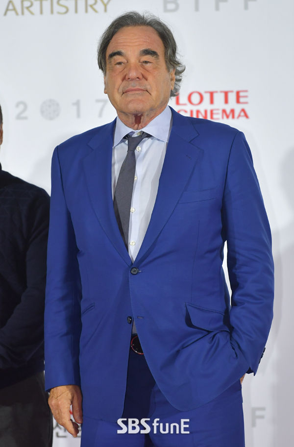 [SBSfunE|해운대(부산)=김현철기자]미국 감독 올리버 스톤이 12일 오후 부산시 해운대구 영화의 전당에서 열린 제22회 부산국제영화제(BIFF) 개막식 레드카펫 행사에 참석하고 있다.