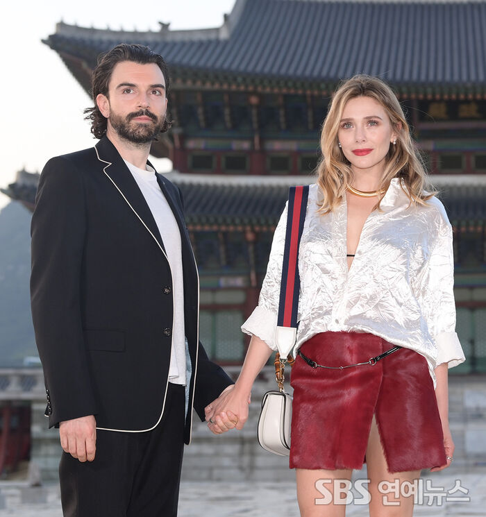 [SBS연예뉴스 | 백승철 기자] 배우 로비 아네트(왼쪽)와 엘리자베스 올슨 부부가 16일 오후 서울 종로구 경복궁에서 열린 한 패션 브랜드 패션쇼에 참석해 포즈를 취하고 있다.