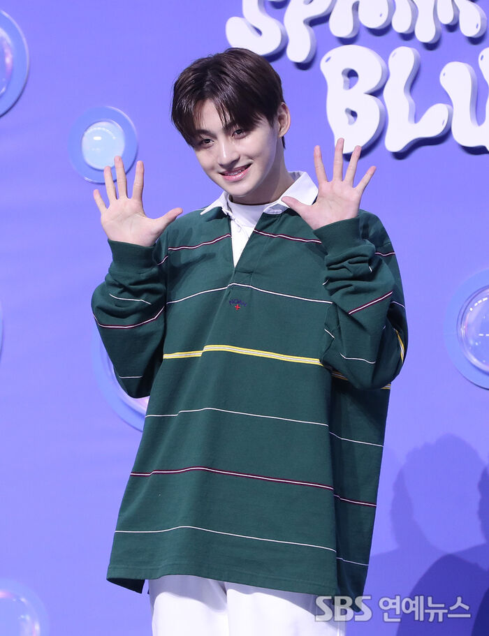 [SBS연예뉴스 | 백승철 기자] 그룹 TWS(투어스)의 지훈이 22일 오후 서울 용산구 블루스퀘어에서 열린 데뷔 미니 앨범 'Sparkling Blue(스파클링 블루)' 발매 기념 미디어 쇼케이스에서 포토타임을 갖고 있다.