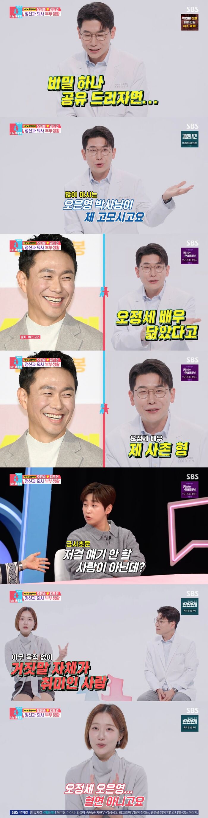 이날 방송에서 오진승은 자신의 비밀을 특별하게 공유하겠다며 말문을 열었다. 이어 그는 "오은영 박사님이 제 고모, 그리고 닮았다는 말을 많이 듣는 오정세 배우가 제 사촌 형이다"라며 상상하지 못한 혈연관계를 밝혀 모두를 놀라게 했다.