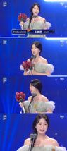 이날 우수상을 수상한 지예은은 "작년에 너무 떨어가지고 말을 못 해서 아쉬웠는데"라며 지난해 연예대상을 떠올렸다.