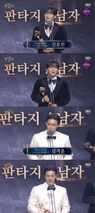 드라마 '귀궁'에서 왕을 연기한 김지훈은 "사실 후보에 육성재 씨랑 같이 있어서 마음을 비우고 있었다. 제 이름을 처음에는 못 들어서 서운할 뻔했는데 큰 상 주셔서 감사드린다"라고 감격스러워했다.