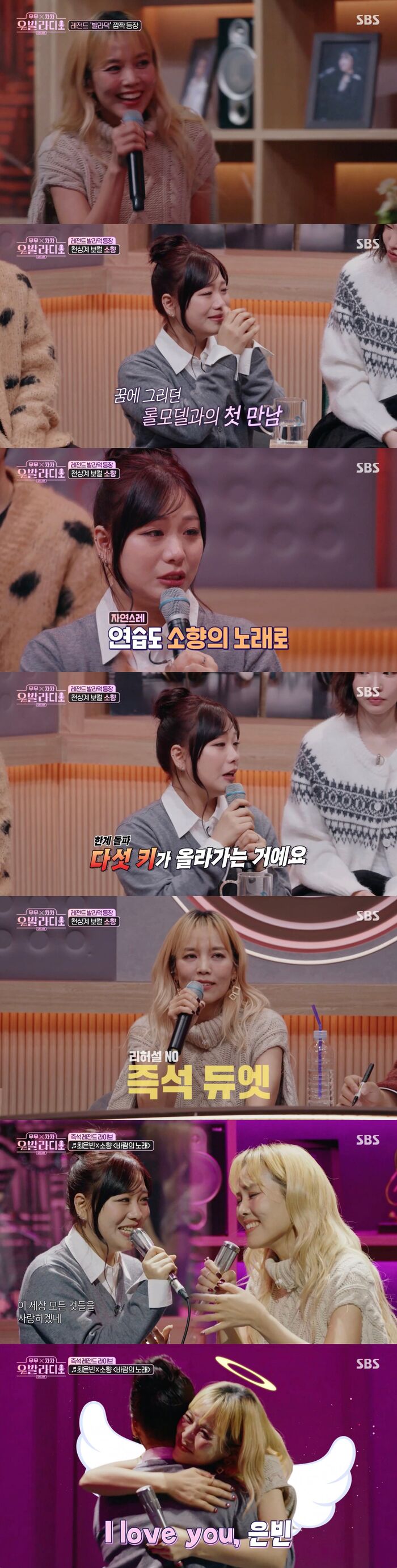 이날 방송에서는 초고음역대를 소화하는 월클 보컬 소향이 등장했다. 이에 소향을 롤모델로 언급했던 최은빈은 눈물을 흘리며 감격했다.