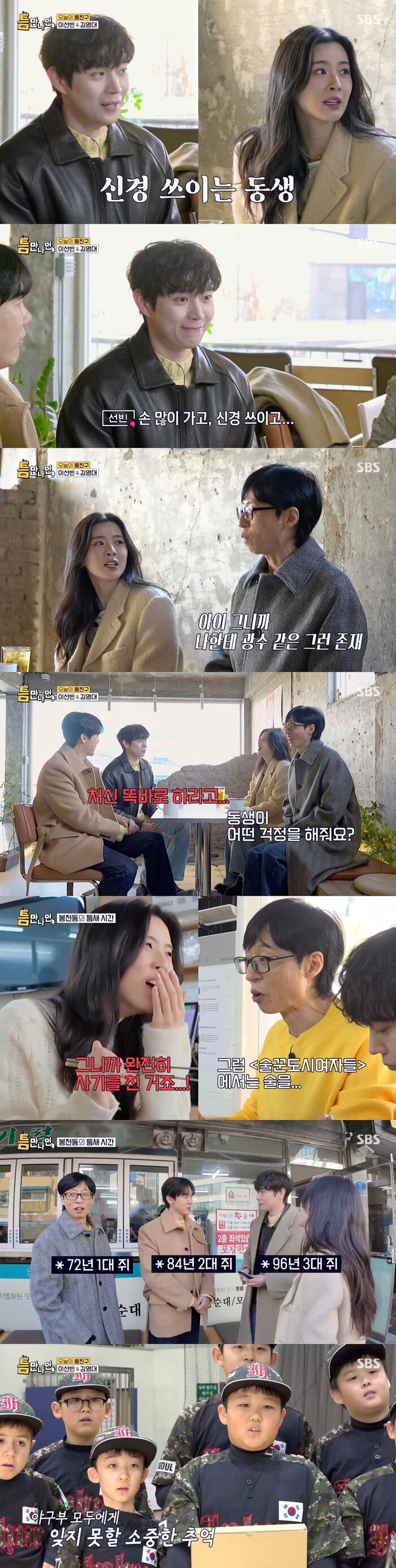 27일 방송된 SBS '틈만 나면'에서는 이선빈 김영대와 함께 봉천동의 틈을 만나러 간 유유형제의 모습이 그려졌다.