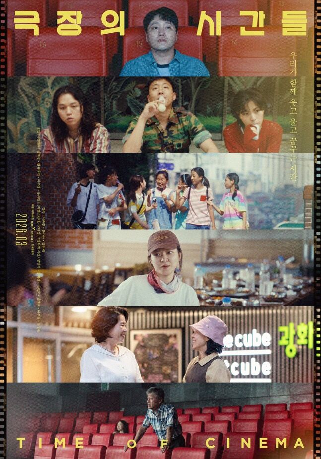 28일 배급사 티캐스트가 공개한 '극장의 시간들' 티저 포스터는 3편 에피소드의 주요 인물들이 보고, 듣고, 즐기고, 느끼는 순간들을 필름 프레임에 분할 배치해 아날로그적인 감성을 불러일으킨다. 여기에 더해진 카피라인 '우리가 함께 웃고 울고 꿈꾸는 시간'은 극장에서 영화를 본 적이 있는 이들에게 소중했던 시간을 떠올리게 하며 공감을 불러일으킨다.