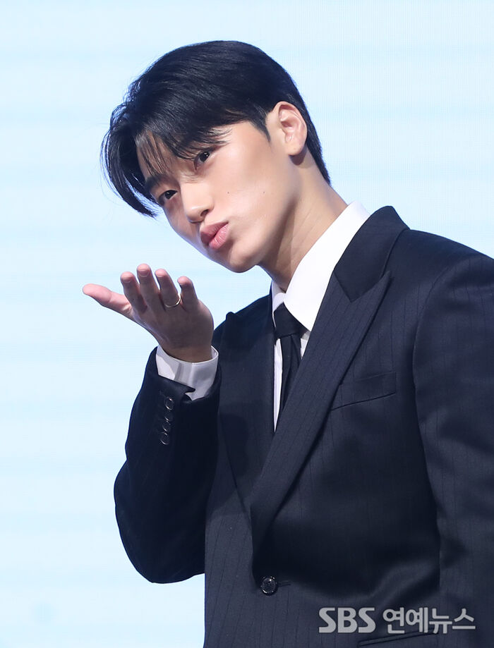 [SBS연예뉴스 | 백승철 기자] 그룹 에이티즈(ATEEZ)의 산이 5일 오후 서울 영등포구 페어몬트 앰배서더 서울 호텔에서 열린 미니 13집 '골든 아워 : 파트 4'(GOLDEN HOUR : Part.4) 발매 기념 기자간담회에 참석해 포토타임을 갖고 있다.