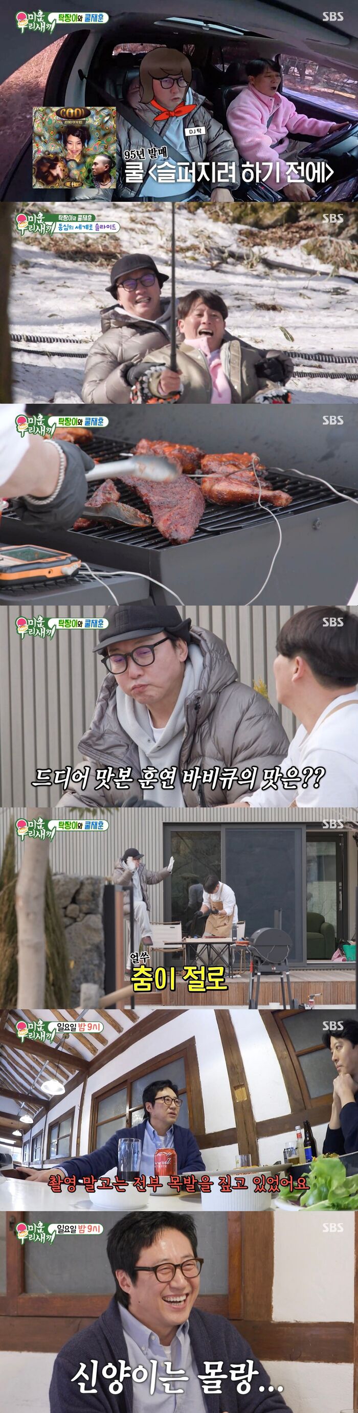 6시간가량 걸리는 훈연 바비큐에 이재훈은 기다리는 동안 눈을 보러 가자고 제안하며 탁재훈을 이끌었다.