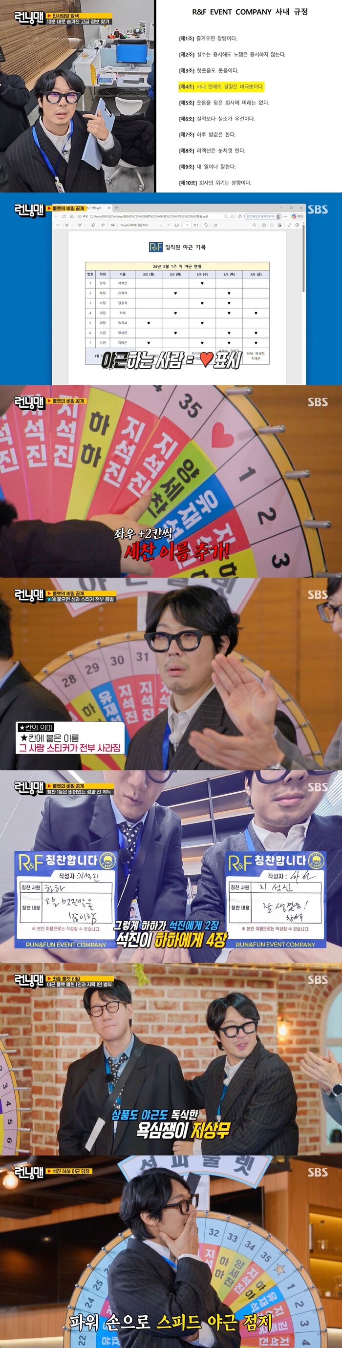 이날 방송에서는 런앤펀 컴퍼니 사원들이 레이스에 유리한 힌트를 얻기 위해 사무실 곳곳을 뒤지고 다녔다.