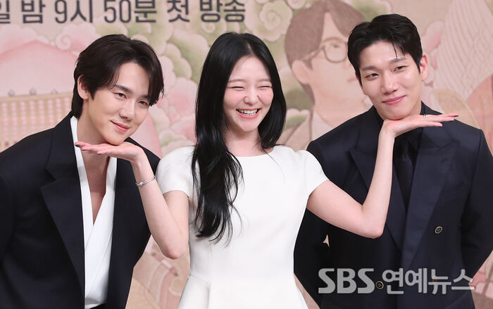 [SBS연예뉴스 | 백승철 기자] 배우 유연석(왼쪽부터), 이솜, 김경남이 11일 오후 서울 양천구 목동 SBS에서 열린 새 금토드라마 '신이랑 법률사무소' 제작발표회에 참석해 포토타임을 갖고 있다.