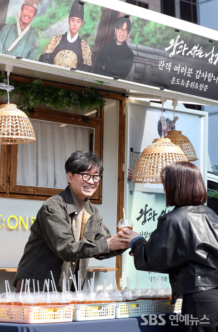 [SBS연예뉴스 | 백승철 기자] 영화 '왕과 사는 남자'의 장항준 감독이 12일 오후 서울 중구 프레스센터 앞 광장에서 천만 흥행 감사 커피차 이벤트를 열고 있다.
