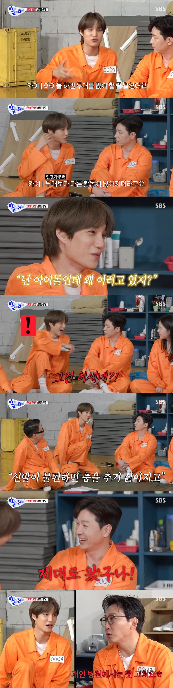 그러자 정상훈은 자신이 듣고 판단해 주겠다고 했다. 이에 카이는 "아이돌 하면 무대를 많이 할 줄 알았는데 어느 순간부터 다른 걸 많이 하고 있었다. 그래서 난 아이돌인데 왜 이러고 있지 싶었다"라고 했다.