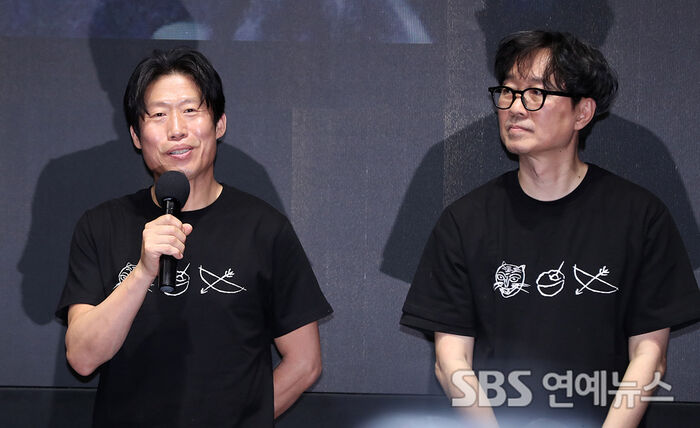 [SBS연예뉴스 | 백승철 기자] 배우 유해진(왼쪽)과 장항준 감독이 17일 오후 서울 강남구 메가박스 코엑스에서 열린 영화 '왕과 사는 남자' 흥행 감사 무대인사 행사에 참석해 인사말을 하고 있다.