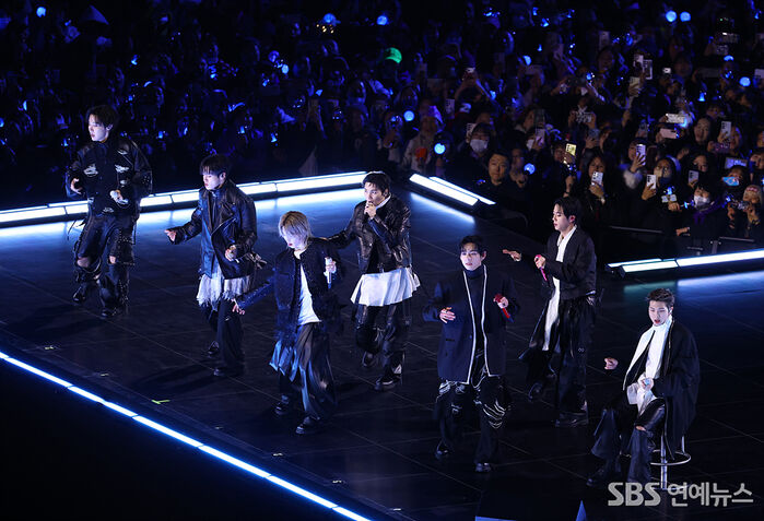 [SBS연예뉴스 | 백승철 기자] 그룹 방탄소년단(BTS)이 21일 오후 서울 광화문 광장에서 'BTS 컴백 라이브: ARIRANG' 공연을 펼치고 있다. (사진=한국온라인사진기자협회 공동취재단)