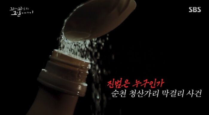 때는 2009년 9월 2일. 전라남도 순천의 한 마을이야. 조용했던 시골마을이 아침부터 소란스러워. 전국에서 수십 명의 기자들이 몰려왔거든. 얼마 전 이 마을에서 의문의 살인사건이 발생했어. 50대 중반의 여성 최 씨가 막걸리를 마시고 사망한 거야.