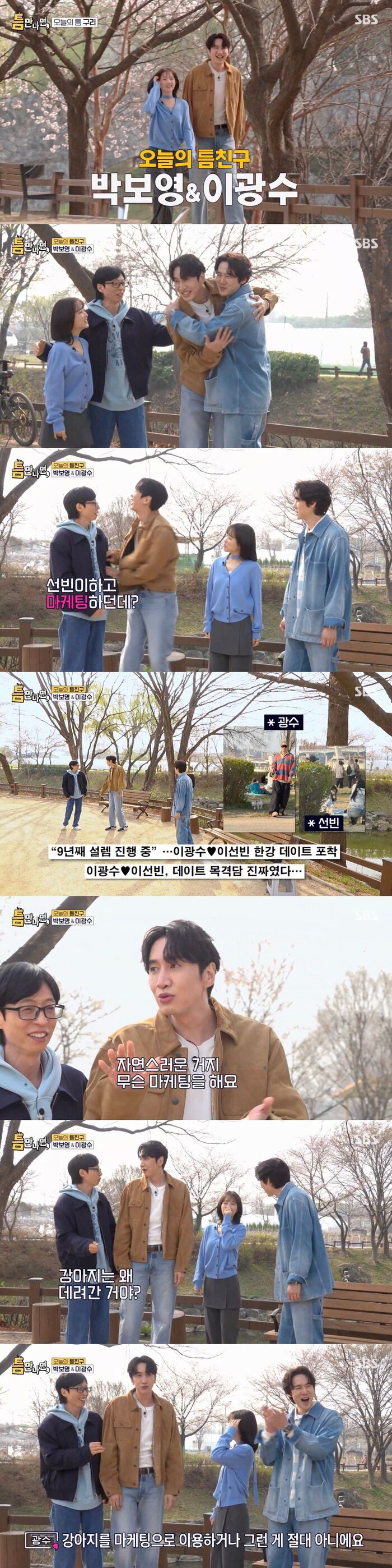 그리고 유재석은 이광수에게 "어제 뭐야? 선빈이하고 마케팅하던데?"라고 했다. 이에 박보영은 녹화 전날 이광수가 이선빈과 한강 데이트를 즐겼다고 말해 눈길을 끌었다.