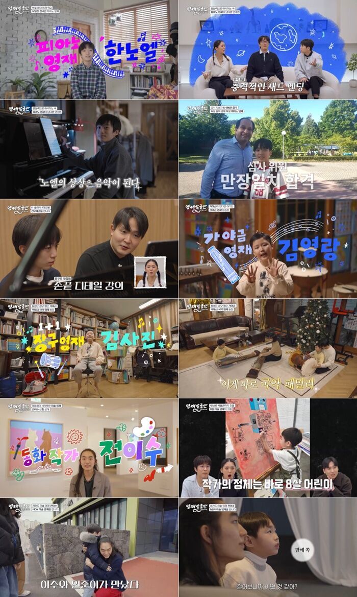 이어 '가야금 영재' 김영랑과 '장구 영재' 김사진 형제의 이야기가 공개됐다. 특히 9세 김영랑은 "세계 무대를 위해 영어를, 다른 음악을 알기 위해 피아노를, 건강을 위해 태권도를 배운다"고 말해 MC 미미미누로부터 "인생 몇 회차냐?"는 감탄을 자아냈다.