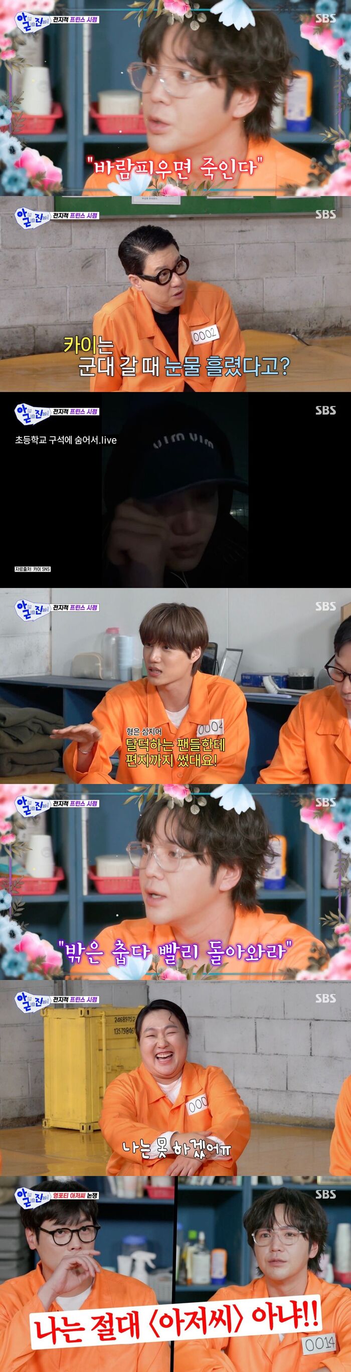 군대 갈 때 눈물을 흘렸다는 카이는 팬들에게 마지막 인사를 전하다가 경비 아저씨에게 쫓기게 된 사연을 공개했다.