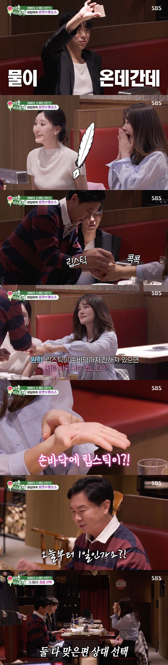 그리고 놀랍게도 소개팅 상대의 손등에 있던 립스틱 자국은 손바닥으로 스며들어 눈길을 끌었다. 어떻게 된 것이냐 묻는 상대에게 임원희는 "이게 사랑의 힘이다"라며 능청을 떨었다.