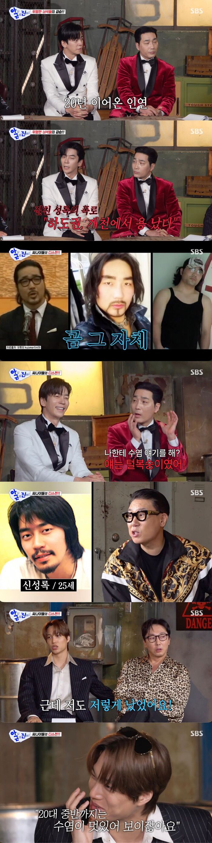 신성록은 하도권에 대해 "과거에는 수염이 이만큼 나고 곰이었다. 단군 신화 속 사람 되기 전 곰 그 자체였다"라고 했다. 그게 멋있는 줄 알고 그렇게 다녔다는 하도권은 "근데 네가 나한테 수염 얘기를 해? 얘는 털북숭이였다"라고 폭로로 응수했다.