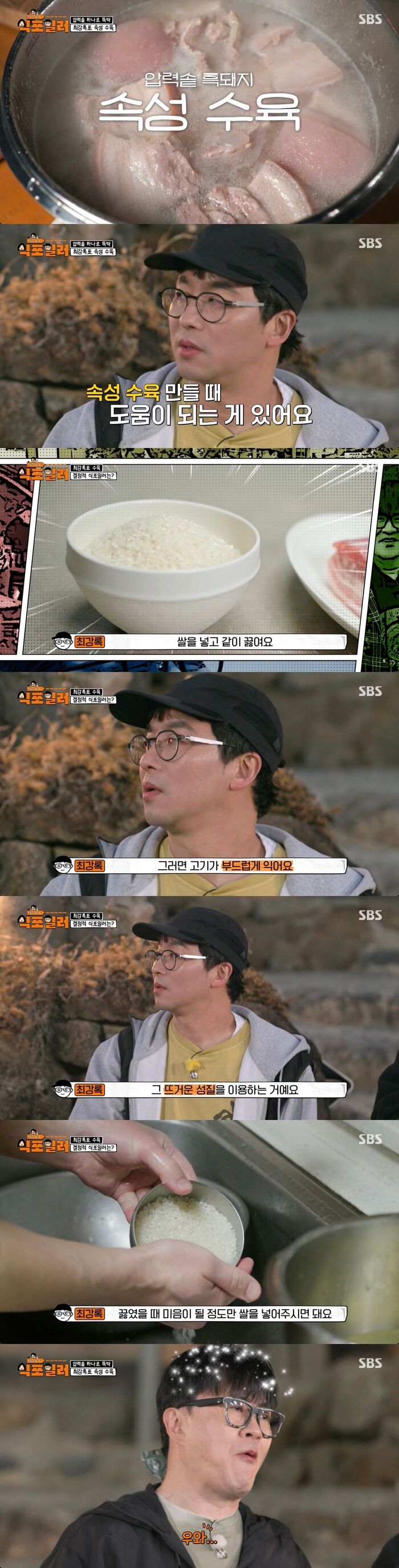 이에 최강록은 "수육 할 때 도움 되는 것이 있다. 쌀을 넣고 같이 끓여요. 그러면 고기가 부드럽게 익습니다"라고 설명했다.