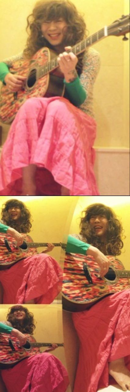 공개된 사진 속에서 윤도현은 긴 파마머리 가발을 쓰고 분홍색 치마를 입고 카메라를 응시하고 있다. 이어 그와 어울리는 아기자기한 무늬의 기타를 안고 함박 웃음을 짓고 있다. 특히 자연스러운 화장으로 여장의 완성도(?)를 높여 웃음을 자아낸다.