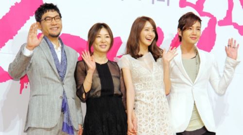[ SBS SBS연예뉴스 | 김현철 기자] 배우 정진영-이미숙-윤아-장근석이 22일 오후 서울 소공동 롯데호텔에서 열린 KBS 월화드라마 '사랑비'제작발표회에서 포즈를 취하고 있다.