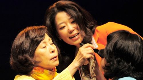 배우 손숙이 23일 오후 서울 충무아트홀에서 열린 연극 '아내들의 외출' 프레스콜에서 열연을 하고 있다.