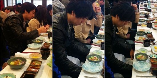 24일 공개된 사진은 MBC 월화극 '빛과 그림자'(최완규 극본, 이주환 이상엽 연출)에서 차수혁 역으로 열연 중인 이필모가 식사 중 테이블 밑으로 대본을 정독하고 있는 모습이다.