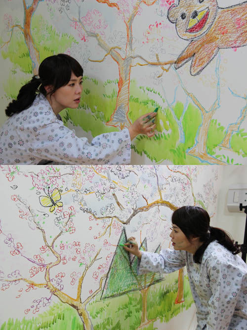 촬영 당시 하희라는 환자복을 입은 채 환한 웃음과 함께 얼굴과 손에 물감과 크레파스를 묻혀가며 이미 그려진 벽그림에다 배꽃이며 나비, 산, 등을 진지하게 덧붙여 나갔다. 이를 지켜보던 스태프들 또한 그녀의 해맑은 모습에 같이 웃음 짓기도 했다는 후문.